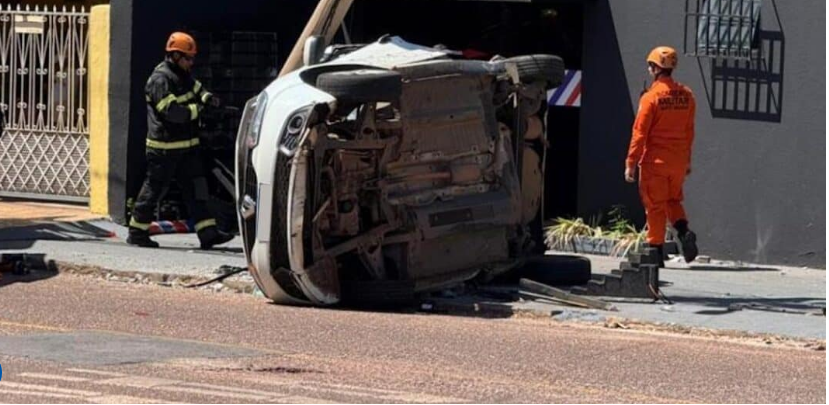 Carro capota após colisão com outro, bate em poste e casal morre em MT