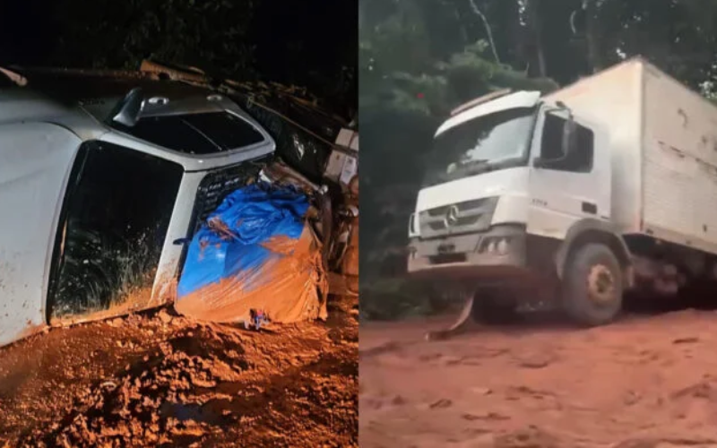 Foto: Reprodução | Motoristas enfrentam atoleiros, veículos tombados e ponte danificada; população cobra ação urgente do DNIT.