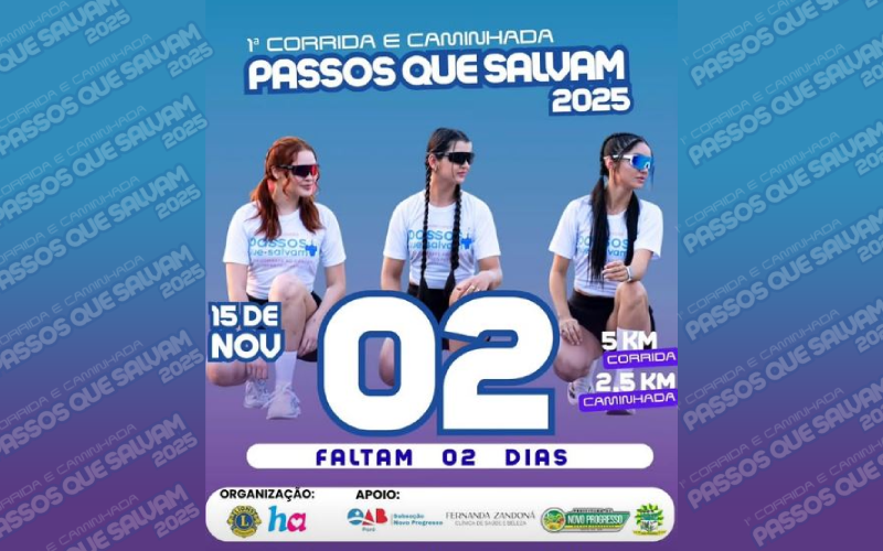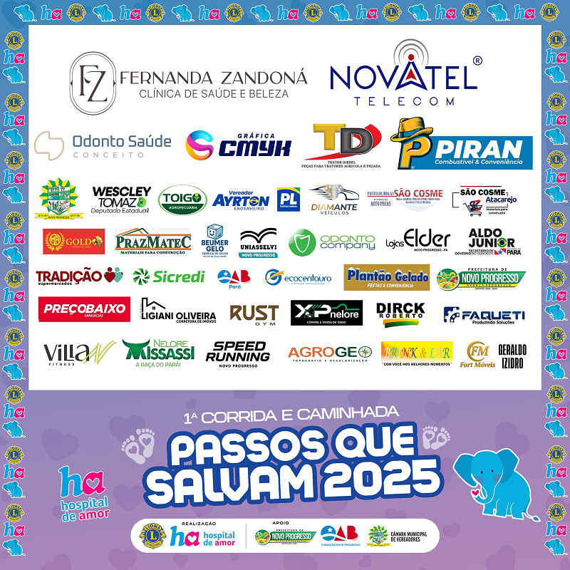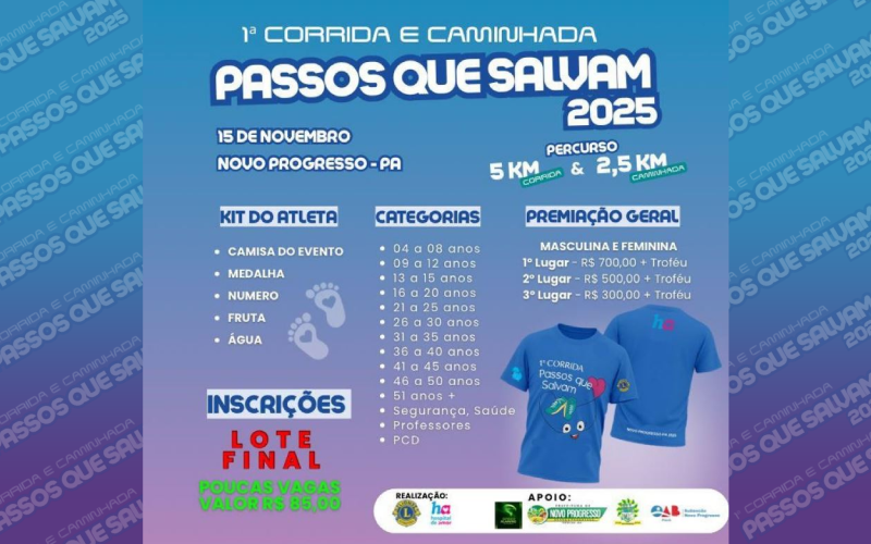 Foto: Reprodução | No próximo dia 15 de novembro, de 2025, a cidade de Novo Progresso (PA) será palco da 1ª Corrida e Caminhada Passos que Salvam 2025, uma iniciativa do Lions Clube de Novo Progresso, em parceria com o Hospital de Amor, com o objetivo de arrecadar recursos para a ala de tratamento infantojuvenil da instituição.