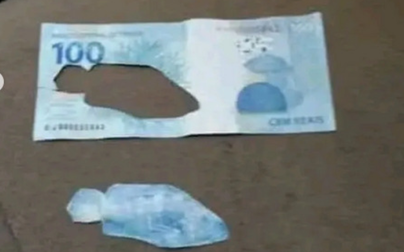 Criança recorta nota de 100 reais achando que era figura de peixinho para dever de casa