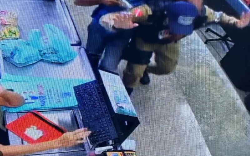 Na sequência, um dos suspeitos entrou em um supermercado na Estrada do Benguí. Câmeras de segurança registraram clientes correndo e se abrigando entre corredores.