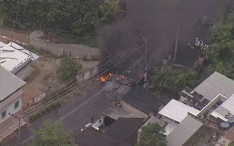 Em represália, grupos atearam fogo a barricadas na Estrada da Chácara, um dos acessos à Chacrinha.