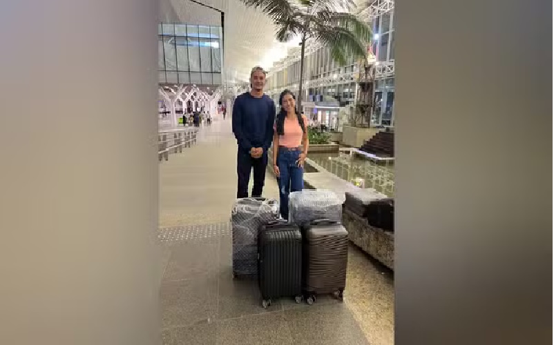 Jerlam Laurindo Cunha e Luanda Evelly Oliveira de Carvalho embarcaram para intercâmbio em Portugal — Foto: Divulgação