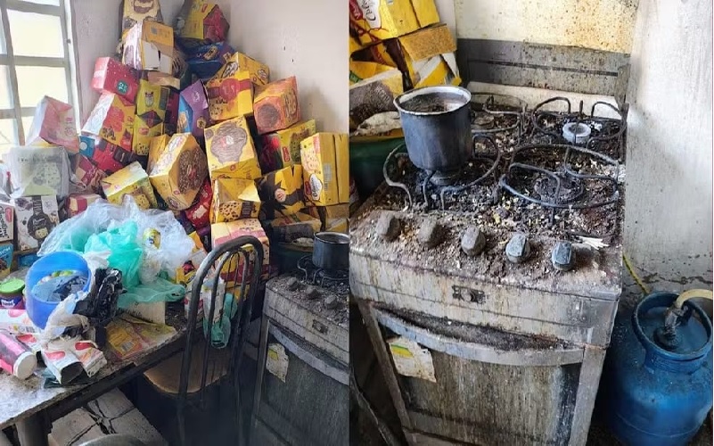 No interior da residência, os agentes encontraram roupas, caixas, lixo e entulhos acumulados em todos os cômodos. O banheiro, a cozinha e o quarto apresentavam condições precárias, com sujeira, mofo e mau cheiro. O fogão estava coberto por crostas de gordura, e caixas de remédio estavam jogadas sobre os móveis. Um grande número de caixas de panetone também chamou a atenção dos investigadores.