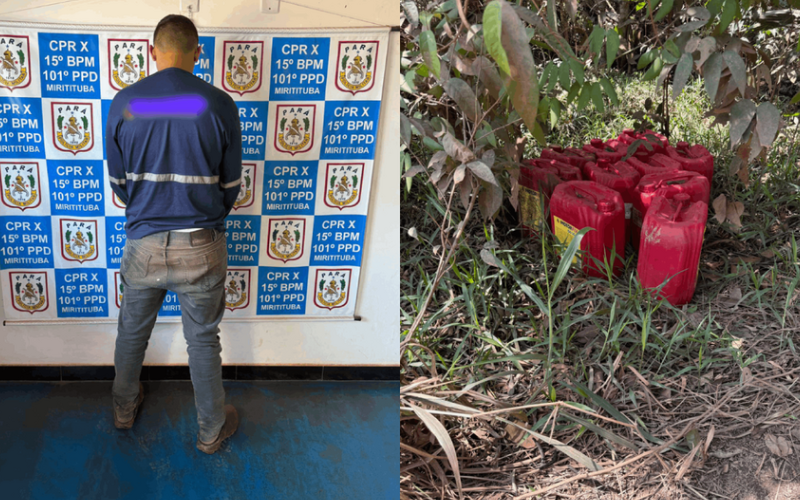 De acordo com as informações repassadas aos policiais, as câmeras de monitoramento da empresa registraram que um funcionário havia sido o último a operar a máquina utilizada no suposto furto. Durante as buscas, equipes de bombeiros civis da própria empresa localizaram dez galões de 20 litros de combustível escondidos nas proximidades do local indicado.