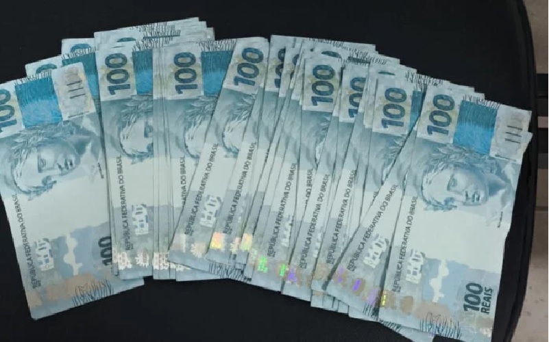 No local, os policiais abordaram Jailson Santos Silva, que estava com duas mochilas — uma rosa e outra vermelha — e uma bolsa pequena verde. Durante a revista, foram encontradas 49 cédulas de R$ 100, totalizando R$ 4.900,00 em notas falsas.