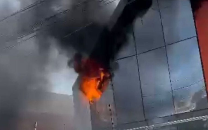 Em imagens que circulam nas redes sociais, é possível observar a fumaça preta saindo do edifício onde funciona a igreja.
