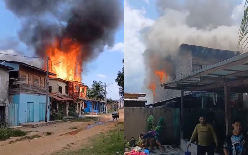Um incêndio de grandes proporções atingiu, pelo menos, duas casas no começo da tarde desta quinta-feira (16), em Gurupá, na Ilha do Marajó. As residências ficam localizadas na Rua Nova Marioca, no bairro Centro. A suspeita é de que um curto-circuito em uma fiação tenha provocado as chamas.