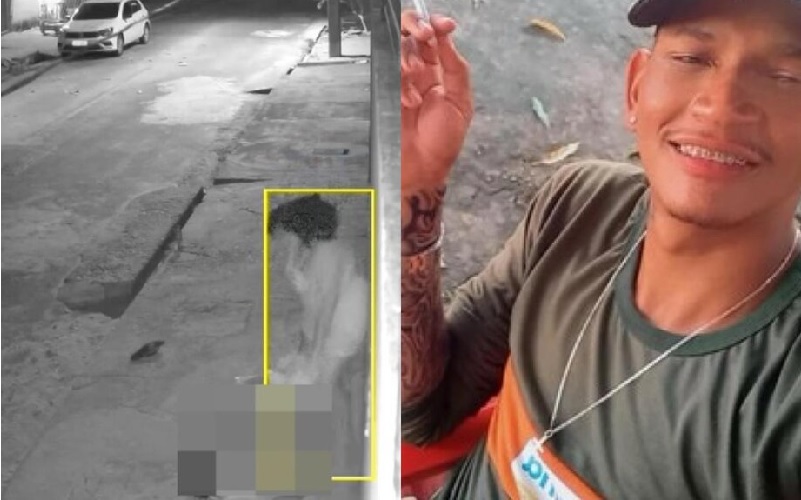 Um vídeo mostra a mulher se aproximando de Carlos, caído na calçada, e o esfaqueando enquanto ele grita. Depois, um homem a puxa, e os dois entram em um carro e saem do local.