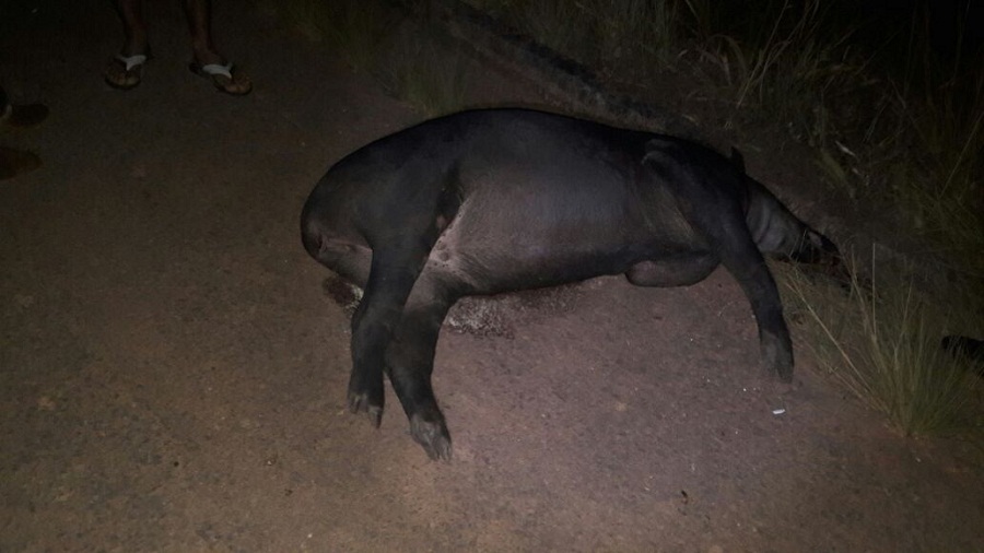 O animal foi atropelado, na noite deste sábado (24), na rodovia BR-163, nas proximidades da comunidade de Santa Julia, distante 25km da cidade de Novo Progresso.