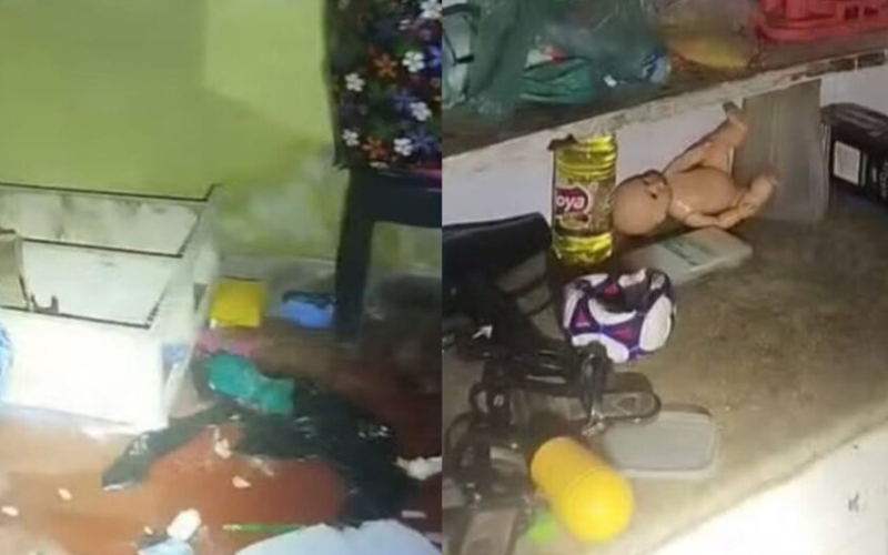 Foto: Reprodução | Crianças foram encontradas sozinhas, em meio a restos de alimentos, lixo e até mesmo com um animal em decomposição na casa.
