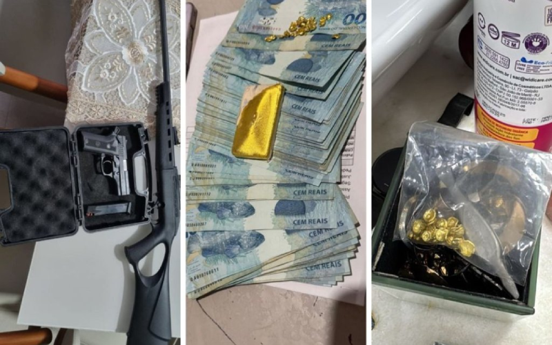 Foram apreendidas armas, barras de ouro, dinheiro em espécie e até um fuzil.