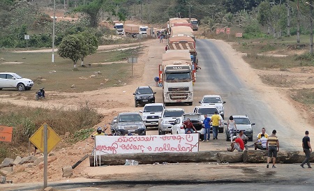 Após a operação dos agentes ambientais naquela localidade, os moradores resolveram fechar a rodovia Br- 163, por volta das 18h00min desta quinta-feira (17/07), no centro da Comunidade de Alvorada da Amazônia, permanece bloqueada, mais de 300 pessoas mantem o bloqueio, o trânsito foi liberado hoje por volta das 11:00 horas e segundo informações será liberado novamente por volta das 23:00 horas. A fila de caminhões e extensa na rodovia.