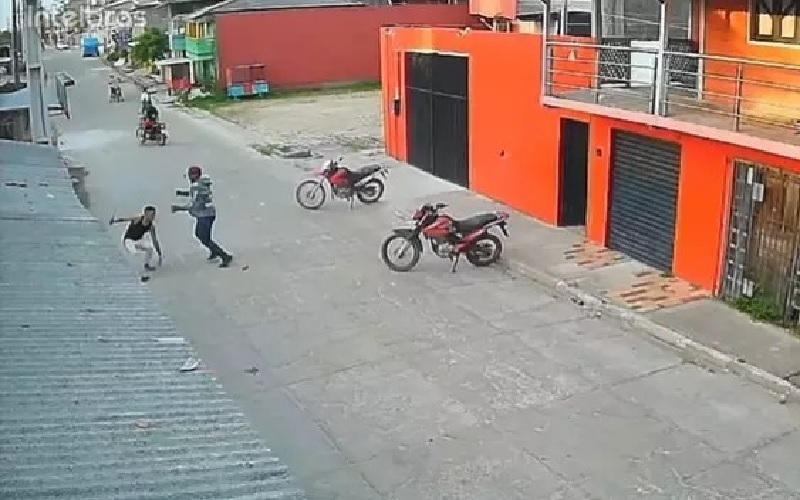 O comparsa, que permaneceu na moto, seguiu em direção ao grupo, momento em que o agressor conseguiu fugir. A vítima, mesmo ferida na cabeça, ainda tenta ir atrás do homem, mas acaba caindo logo em seguida.