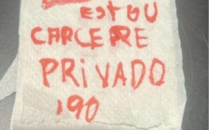 Na sexta (3), ela pediu para ir até uma conveniência comprar cigarro e, durante a uma ida ao banheiro, aproveitou para escrever o bilhete.