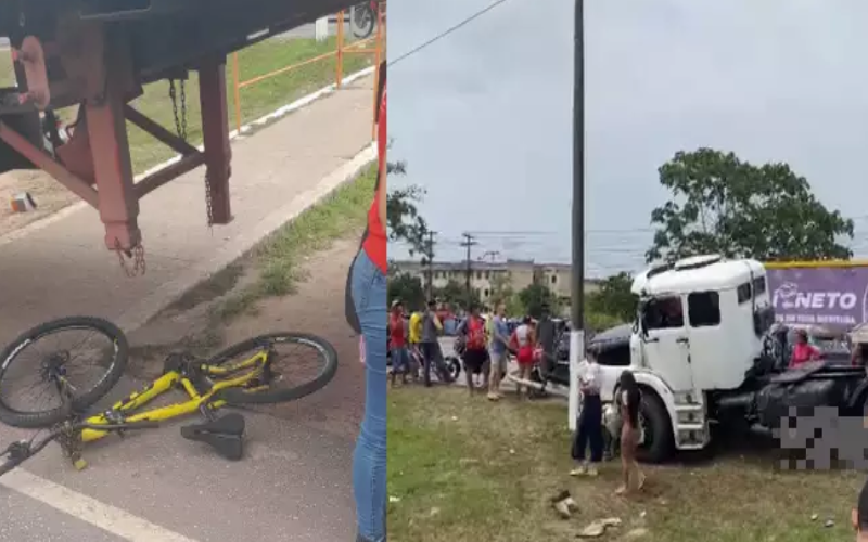 Imagens que circulam nas redes sociais mostram a vítima caída na pista e o companheiro sendo ajudado por testemunhas. O caminhão, que transportava uma motocicleta e alguns pedaços de madeira, ficou parado com a parte da frente no canteiro central e a parte traseira na pista.