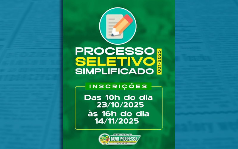 A Prefeitura Municipal de Novo Progresso, no Pará, lançou edital de Processo Seletivo para contratação imediata de pessoal em caráter temporário, além da formação de Cadastro de Reservas (CR). A seleção visa atender as necessidades essenciais em toda a esfera municipal, tanto na zona urbana quanto na rural.