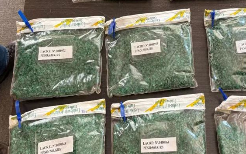 Além do dinheiro, também foram apreendidos oito sacos plásticos com esmeraldas em uma empresa localizada em Campinas, no interior do estado. Cada pacote foi avaliado em cerca de R$ 11 mil. Um laudo indicando que se trata de esmeralda bruta também foi encontrado.