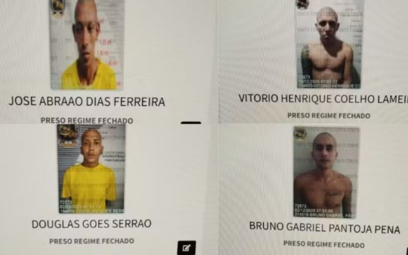 Os fugitivos foram identificados como Bruno Gabriel Pantoja Pena, Vitório Henrique Coelho Lameira, José Abraão Dias Ferreira e Douglas Goes Serrão.