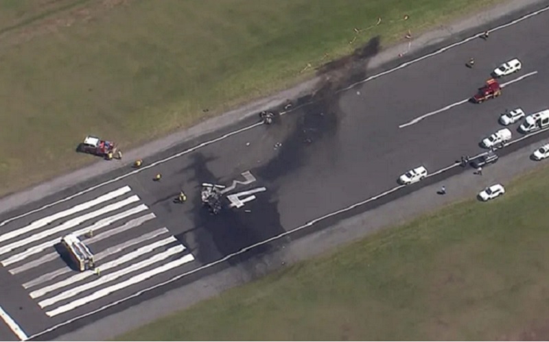 altitude rapidamente e atingido a pista de frente, incendiando-se em seguida.