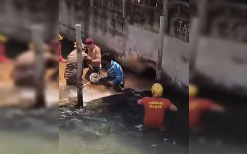 Foto: Reprodução | A corporação foi acionada por volta das 11h deste domingo (12/10). Sucuri foi retirada do local e ninguém se feriu