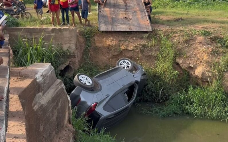 Relatos indicam que o condutor teria subido na proteção da ponte antes de cair na água. Por volta das 8h50 da manhã, o carro, um modelo Tracker, foi retirado do córrego com auxílio de um guincho.