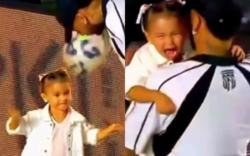Vídeo: Mavie leva bolada acidental, e Neymar consola a filha na Vila Belmiro