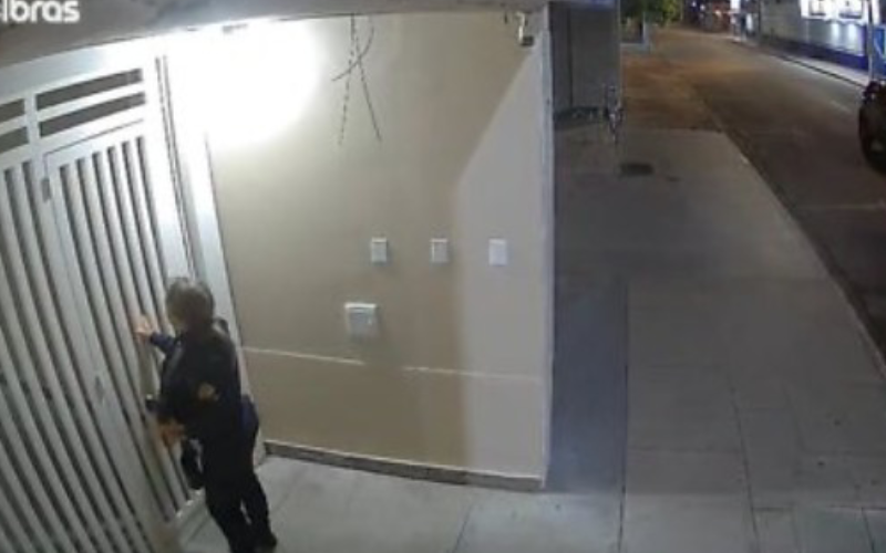 Imagens de câmeras de segurança registraram o desespero da mulher pedindo socorro, enquanto a PM tentava negociar com o agressor. O vídeo mostra o momento em que os policiais chegam e ordenam que ele largue a faca e abra o portão.