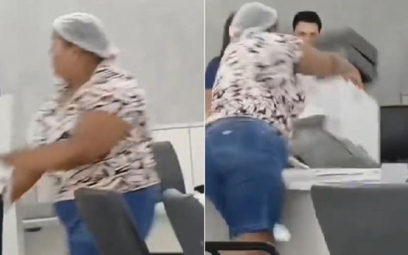 VÍDEO: Mulher se revolta com falta de energia e quebra computadores na sede da Equatorial Energia