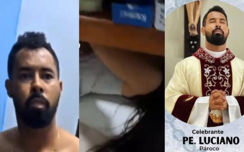 Nas imagens, o padre aparece sem camisa, vestindo apenas um short, quando o noivo e o sogro da mulher exigem que ele abra a porta do quarto. É possível ouvir uma mulher gritando “é o nosso padre”, enquanto o sogro insiste diversas vezes para que o religioso abra a porta.