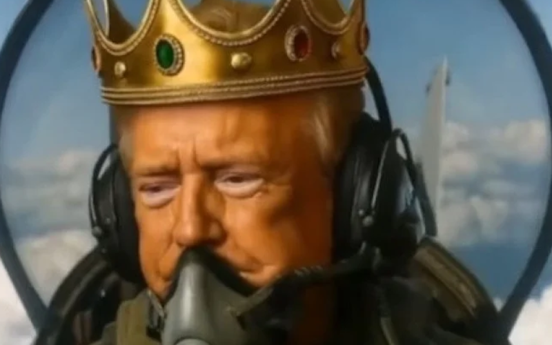 O presidente dos Estados Unidos, Donald Trump, publicou neste domingo (19/10) um vídeo feito por inteligência artificial em que aparece pilotando um avião militar, usando uma coroa de rei e lançando “bombas” de fezes sobre manifestantes dos protestos “No Kings” (“Sem reis”). A publicação foi feita na rede social, a Truth Social.