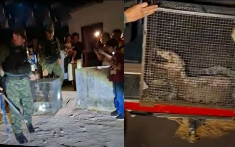 Foto: Reprodução | O que era para ser uma noite tranquila se transformou em um susto para moradores do bairro Nova República, em Santarém, nesta quarta-feira (1). Um jacaré-açu, com aproximadamente 20 kg, invadiu uma residência localizada na Travessa 26.